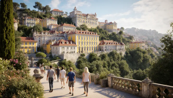 Синтра в Португалии известна своей живописной архитектурой. Город сочетает в себе яркие дворцы, богато украшенные особняки и ухоженные садовые усадьбы, что делает его привлекательным направлением для прогулок и фотосъёмки.