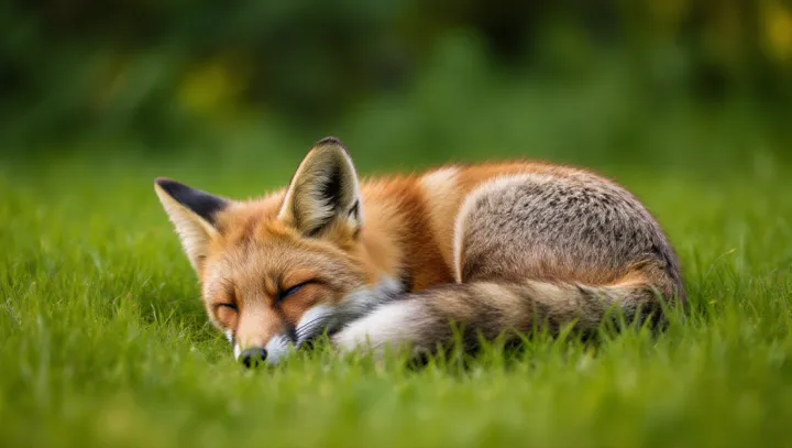 Маленькая рыжая лисица была замечена свернувшейся в клубок и спящей на небольшом участке травы. Наблюдавшие описывали сцену как тихую и спокойную: животное не проявляло беспокойства и спокойно дремало.