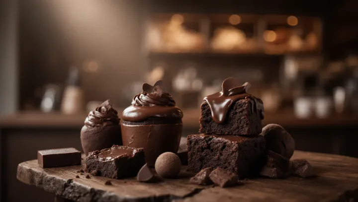 В список вошли: шоколадный фондан — тёплый и тягучий; тёмный шоколадный мусс — воздушный и насыщенный; плотные брауни — с влажной структурой; шоколадные трюфели — нежные и интенсивные; шоколадный тарт — с хрустящей коркой; шоколадный суфле — лёгкий и пышный; шоколадные эклеры — с кремовой начинкой; шоколадный чизкейк — сливочный и плотный.