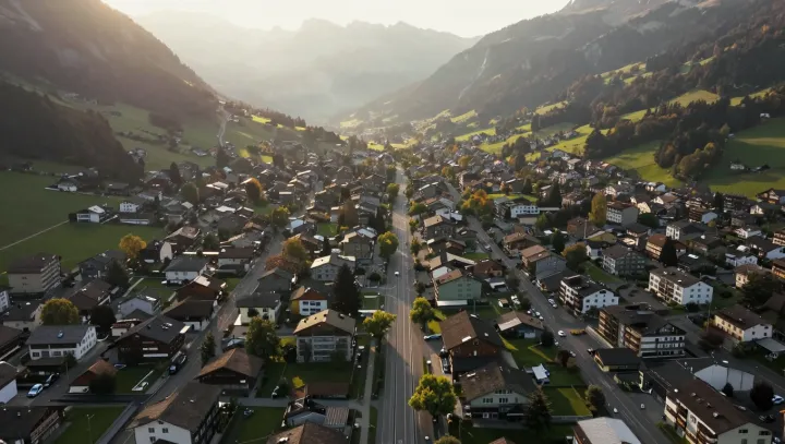Если смотреть с хребта на освещённую долину, где пригородные поезда скользят мимо тёмных полос леса, страна выглядит не столько как открытка, сколько как тщательно продуманная схема того, сколько городской жизни может впитать небольшая альпийская котловина, прежде чем горы дадут ответную реакцию.