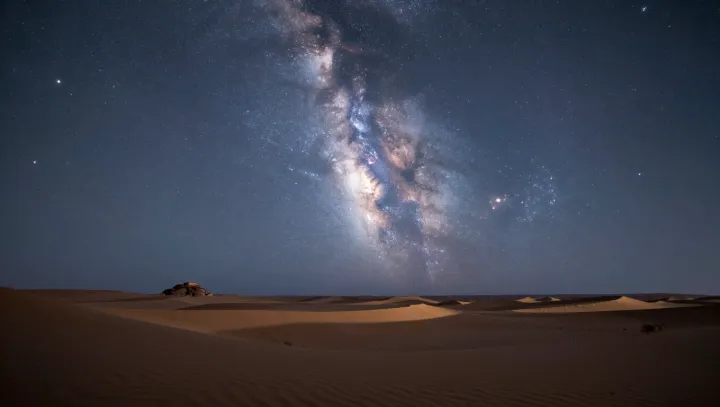 Над высоким плато пустыни Намибии темнота не просто наступает — она воцаряется полностью. Скудное население, редкие источники искусственного освещения и ещё более редкие облака превращают небо в открытый, ничем не заслонённый интерфейс между человеческим глазом и галактическим центром Млечного Пути.