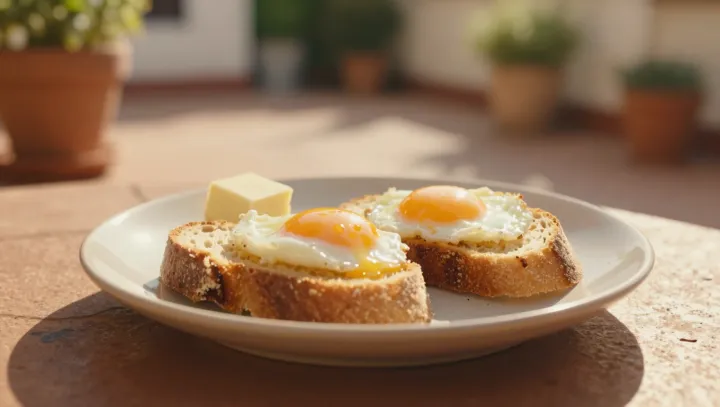 Кусок хлеба с яйцом, съеденный на террасе, с точки зрения питания больше похож не на лёгкий перекус, а на уменьшенную копию полноценного приёма пищи. В таком сочетании в одном небольшом блюде объединяются углеводы, полноценный белок и пищевые жиры, то есть сразу несколько основных макронутриентных компонентов, которые в более обильных и сложных блюдах часто распределяются по нескольким подачам.