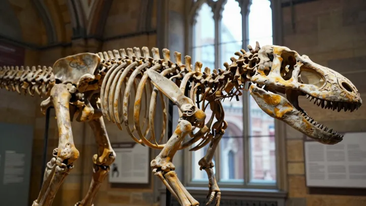 Каменная глыба в Лондонском Музее естественной истории с необычайной точностью фиксирует последние минуты жизни динозавра. То, что кажется бесформенной плитой, на самом деле содержит сочленённый скелет, отпечатки кожи и слоистые осадки, которые вместе образуют строго ограниченную временную шкалу смерти.