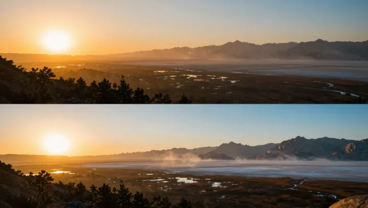 Горы добавляют топографическую сложность: турбулентное перемешивание, температурные инверсии в долинах и многослойные воздушные массы образуют отдельные ярусы дымки, разрезающие небо на цветовые слои. Над городами продукты сгорания, сажа и вторичные аэрозоли действуют как оптический фильтр со своей системой пограничных эффектов: они усиливают многократное рассеяние и поглощение, углубляя красные тона, но иногда превращают Солнце в плоский бледный диск. Каждый ландшафт задает свой «бюджет энтропии» солнечному свету, направляя один и тот же входящий спектр к разным зрительным финалам.