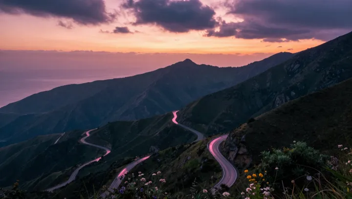 Внизу чёрные лавовые поля жадно впитывают свет, вдали светится белое облачное покрывало, а между ними бледная лента дороги круто петляет по склонам. С высоты Тенерифе выглядит как вертикальный разрез климата: слои сменяют друг друга один за другим, и автомобиль проходит их за одну непрерывную, но стремительную подъёмную траекторию.