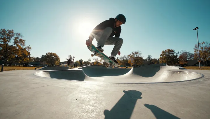 Второй слой иллюзии даёт работа телом. Поджимая, выпрямляя или разворачивая корпус, скейтер перераспределяет угловой момент вокруг своего центра масс. Меняется момент инерции, из‑за чего по‑другому двигаются руки и ноги, но баллистическая траектория в целом остаётся прежней. Когда торс остаётся почти неподвижным и обращён к камере, а под ним крутится или переворачивается только доска, создаётся впечатление, что тело на мгновение «прибито» к одной точке в пространстве, а весь трюк выполняет оборудование.