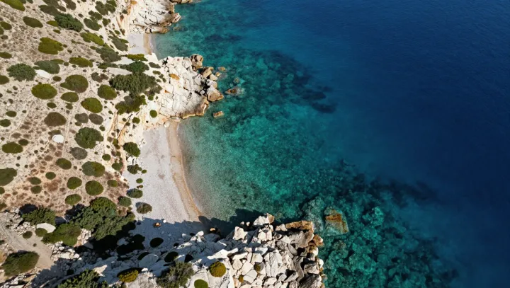 Глубокий ярко‑синий цвет воды чаще всего говорит о поразительно пустом океане. В открытом море молекулы воды поглощают красную часть спектра и рассеивают синюю, и почти ничто этому не мешает. В толще воды мало взвешенных частиц и микроскопических организмов, поэтому свет проходит дальше, и синий диапазон волн доминирует в том, что мы видим сверху.