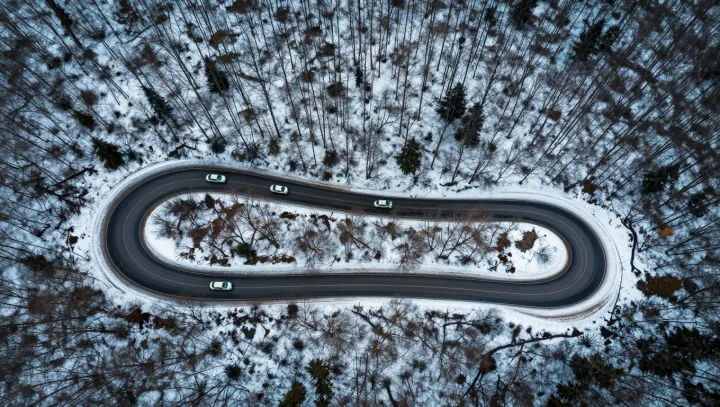 Горная дорога по снежному полю, залитая жестким светом, может казаться полосой отполированного синего стекла и при этом напрочь лишать ощущения реальной дистанции. На фотографиях она выглядит предельно четкой, но в реальности это почти идеальные условия для зрительного просчета.