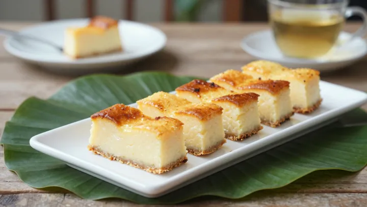 Его заварная, кремовая текстура во многом связана с жиром и сахаром, которые работают как страховка для структуры. Кокосовое молоко приносит капельки жира, мешающие кристаллизации, а сахар выступает увлажнителем, связывает свободную воду и понижает ее активность. Под действием тепла эта эмульсия из крахмала, жира и сахара «схватывается» и становится ближе к запеченному пудингу, чем к привычному воздушному мякишу бисквита, поэтому каждый кусочек остается мягким, плотным и почти кремовым, а не высыхает до состояния губки.