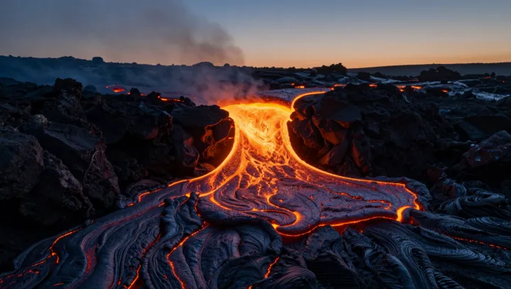 Ключ к этим превращениям — вязкость, то есть сопротивление потоку. Для магмы это примерно так же важно, как основной обмен веществ для человеческого организма. Базальтовая магма с высоким содержанием газа и низким содержанием кремнезёма остаётся относительно жидкой. Газовые пузырьки легко движутся и выходят наружу, давление внутри остаётся низким, и система сбрасывает энергию в виде устойчивых фонтанов лавы и спокойных потоков. Если же доля кремнезёма растёт, в расплаве формируются полимеризованные цепочки силикатов, вязкость увеличивается, и он превращается в более стекловидную, липкую жидкость, которая удерживает газ, а не выпускает его.