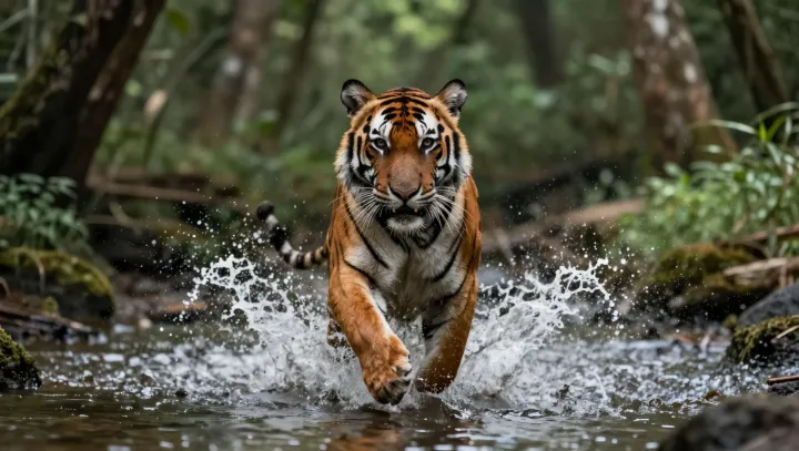 Плотный полог, редкие прорывы света и ковёр из сплошной тени превращают суматранский тропический лес в оптический фильтр — и одновременно «оттачивают» одного из его самых совершенных хищников, суматранского тигра. В таком мире выживают лишь те животные, которые способны раствориться в хаотичном рисунке тёмных стволов и узких бликов, сокращая дистанцию между скрытным преследованием и смертельным броском.