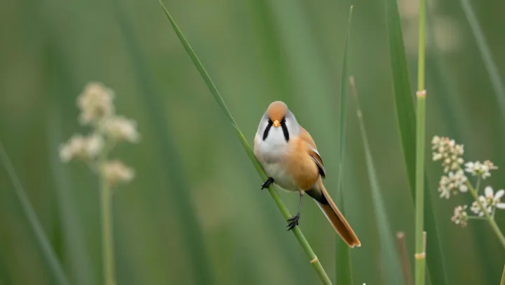 Остальное делает поведение. Камышовые птички летают низко, лавируют между стеблями и постоянно меняют наклон головы, по сути управляя углом атаки и клюва, и перьевой бороды. Быстрые поправки от вестибулярного аппарата и зрения помогают держать «бородатую» голову строго по потоку, сохраняя подъемную силу на крыльях и эффективность рулевых перьев на хвосте. В итоге половой отбор может «требовать» все более сложные и заметные лицевые перья, а аэродинамика вынуждает оставлять их компактными, обтекаемыми и почти «бесплатными» по механике даже в стремительном, закрученном полете.