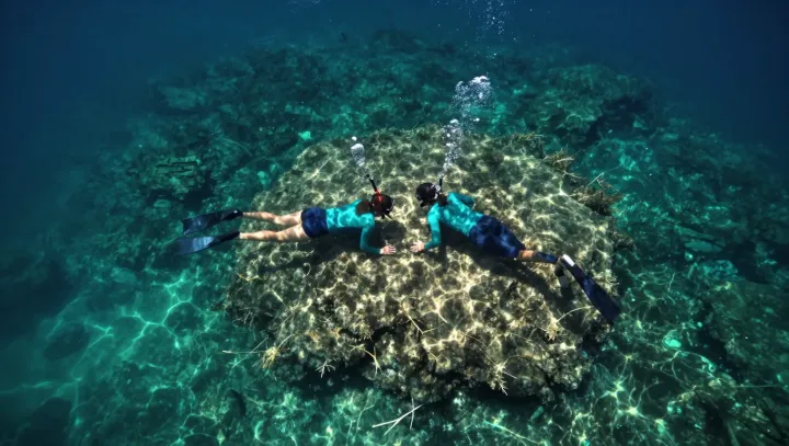 Неподвижная гладь воды держит на поверхности два полностью расслабленных тела: они лежат лицом в воду, при этом дышат ровно и без напряжения. Со стороны это выглядит как трюк, но всё упирается всего в два параметра — плотность тела и объём воздуха в лёгких. Как только ими начинают осознанно управлять, первые попытки плавать с маской и трубкой перестают быть борьбой и превращаются почти в невесомое зависание у самой поверхности.