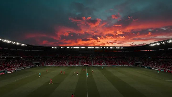 Облака висят высоко над полем: там скапливаются конденсированные капли воды и запускают рассеяние света по механизму Ми. Эти капли перехватывают и перенаправляют часть луча, но основная доля рассеяния и поглощения происходит далеко наверху, а не на последнем отрезке между мячом и глазом нападающего. Внутри чаши стадиона воздух в основном прозрачен, присутствуют лишь мелкие аэрозоли, которые дают ограниченное рэлеевское и ми‑рассеяние в масштабах футбольного поля.