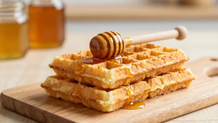 Если заменить кристаллическую сахарозу мёдом, внутренняя архитектура меняется. Более высокое содержание фруктозы и более низкая активность воды в мёде сдвигают осмотическое давление в тесте, замедляют выход газа и создают более мелкие и ровные пузырьки. Его восстанавливающие сахара раньше и при более низкой температуре вступают в реакцию Майяра, меняя и ход подрумянивания, и набор летучих соединений. Вместо сравнительно нейтральной карамельной ноты вафля даёт более широкий ароматический спектр — с цветочными и слегка кисловатыми оттенками, потому что мёд приносит в зону реакции собственные готовые предшественники вкуса и запаха. Хрустящая оболочка сохраняется, но геометрия пузырьков и ароматический рисунок становятся тонко, но заметно и измеримо другими.