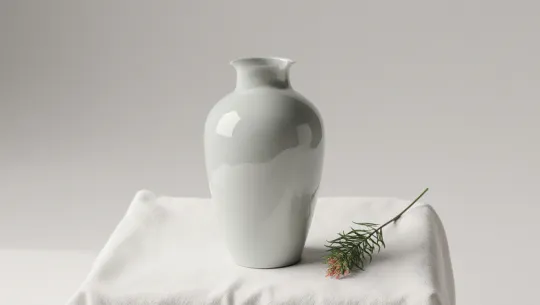 Фарфоровая ваза на белой ткани